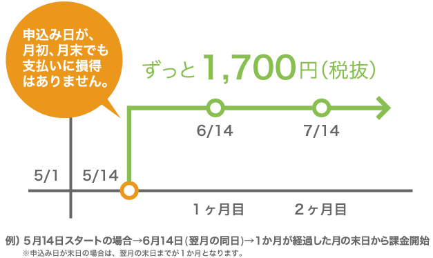 ※月額制の初回課金は申込日から1ヶ月が経過した月末からスタートします。