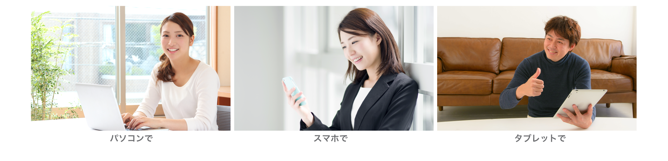講義動画は、スマホ、PC、タブレットなど様々なデバイスで視聴できます。