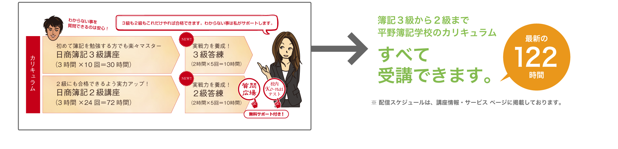 平野簿記学校の全ての簿記講座が「合格するまで」「月額1,700円」で受け放題。