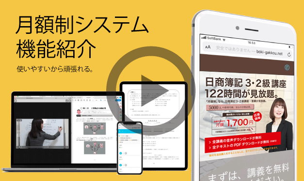 まずは平野明日香の講義を無料体験してみてください! 平野簿記学校で実施される基本講座(3級・2級)をご受講いただけます。ご自身の学習イメージができたら、いよいよ月額制の申込みをご検討ください。3級講座・2級講座、平野簿記学校実施の全講座を無制限にご受講いただけます。